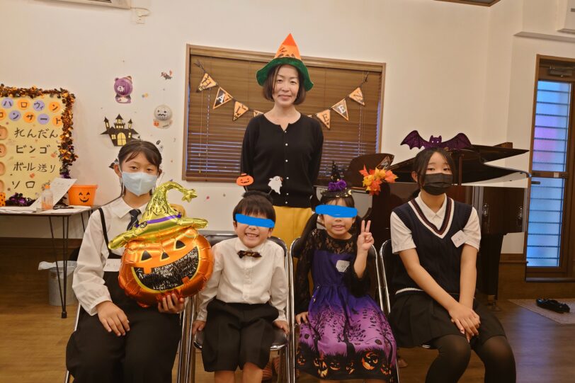 今年はホールでの発表会の開催が難しく、お教室でのハロウィンコンサートという形を取りました。