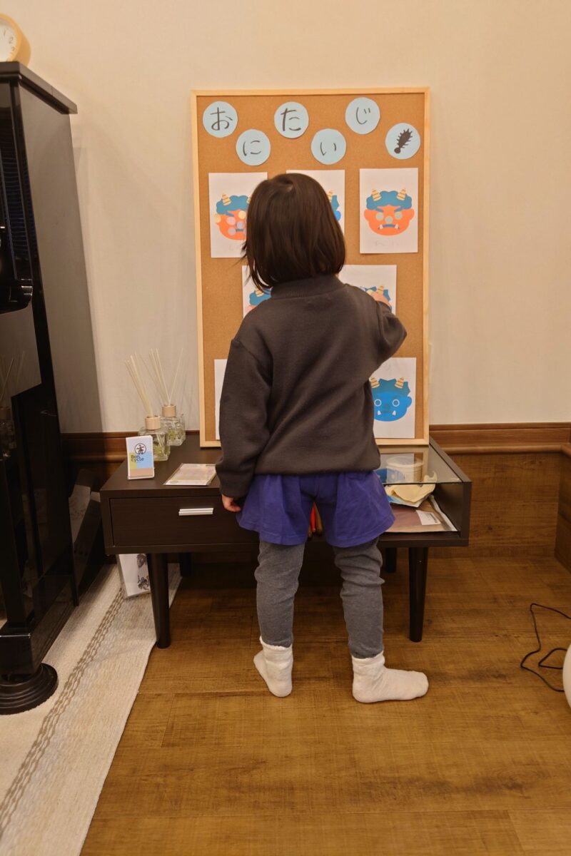 今月はタイトルの通り、節分を絡めて「おにたいじレッスン」を行っています。